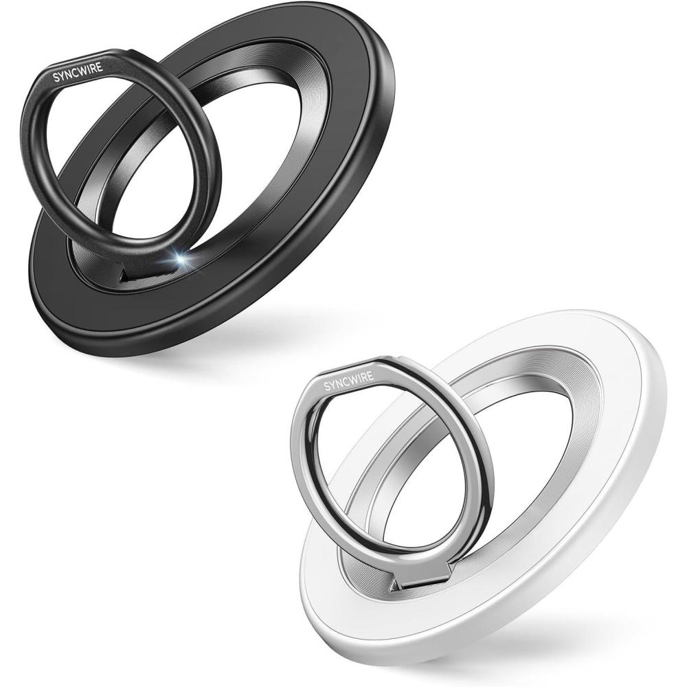 SYNCWIRE Magnetic Phone Ring Holder for MagSafe [2 Pack] - Magnet Cell Phone Grip Stand Finger Ring Kickstand Two-Sided Magnetic Compatible with iPhone 17 Pro Max 16 15 14 13 12 MagSafe Accessories(Single Ring-Black+White)